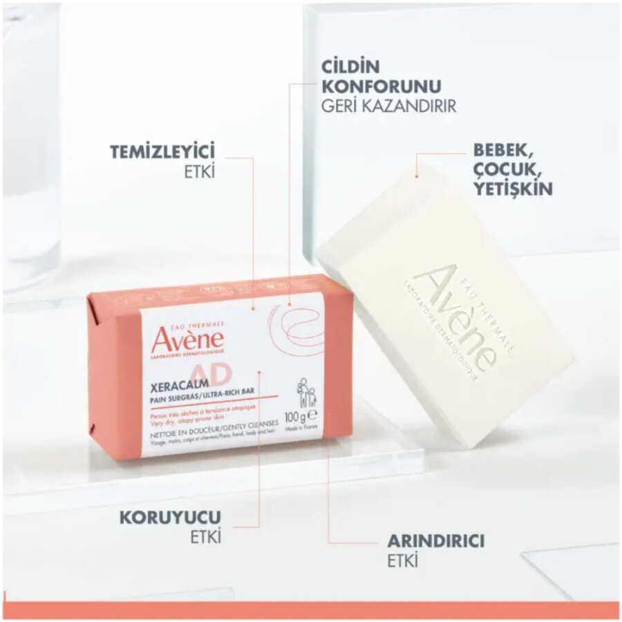 Xeracalm A.D Temizleme Barı, yoğun kuruluk ve kaşıntıya eğilimli hassas ciltlerin nazikçe temizlenmesine katkıda bulunabilecek bir dermatolojik bakım ürünüdür. Sabunsuz ve pH-nötr formülü cilt toleransını desteklemeye yardımcı olabilir. Avène Termal Suyu ve I-modulia® içeriği ile cilt üzerinde yatıştırıcı ve rahatlatıcı bir his sunabilirken, çuha çiçeği yağı ile besleyici lipid fazı cilt bariyerine destek sağlayabilir. Kokusuz ve komedojenik olmayan formül, bebekler dahil tüm aile bireyleri tarafından güvenle tercih edilebilir.