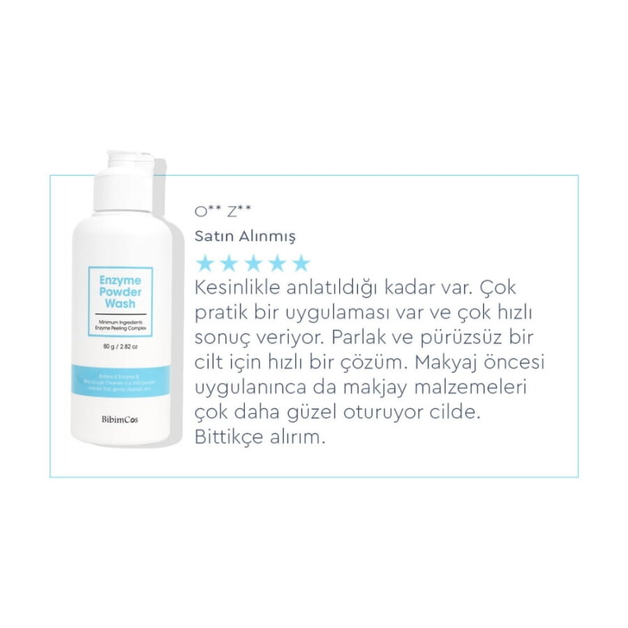 Bibimcos Enzyme Powder Wash, günlük cilt temizliği için geliştirilmiş bitki temelli toz formda bir temizleyicidir. Papaya meyvesinden elde edilen papain enzini ile formüle edilmiştir. Köpürerek cilt yüzeyindeki kir, makyaj kalıntısı ve ölü hücrelerin arındırılmasına yardımcı olur. Hassas ciltler dahil tüm cilt tipleri için uygundur.