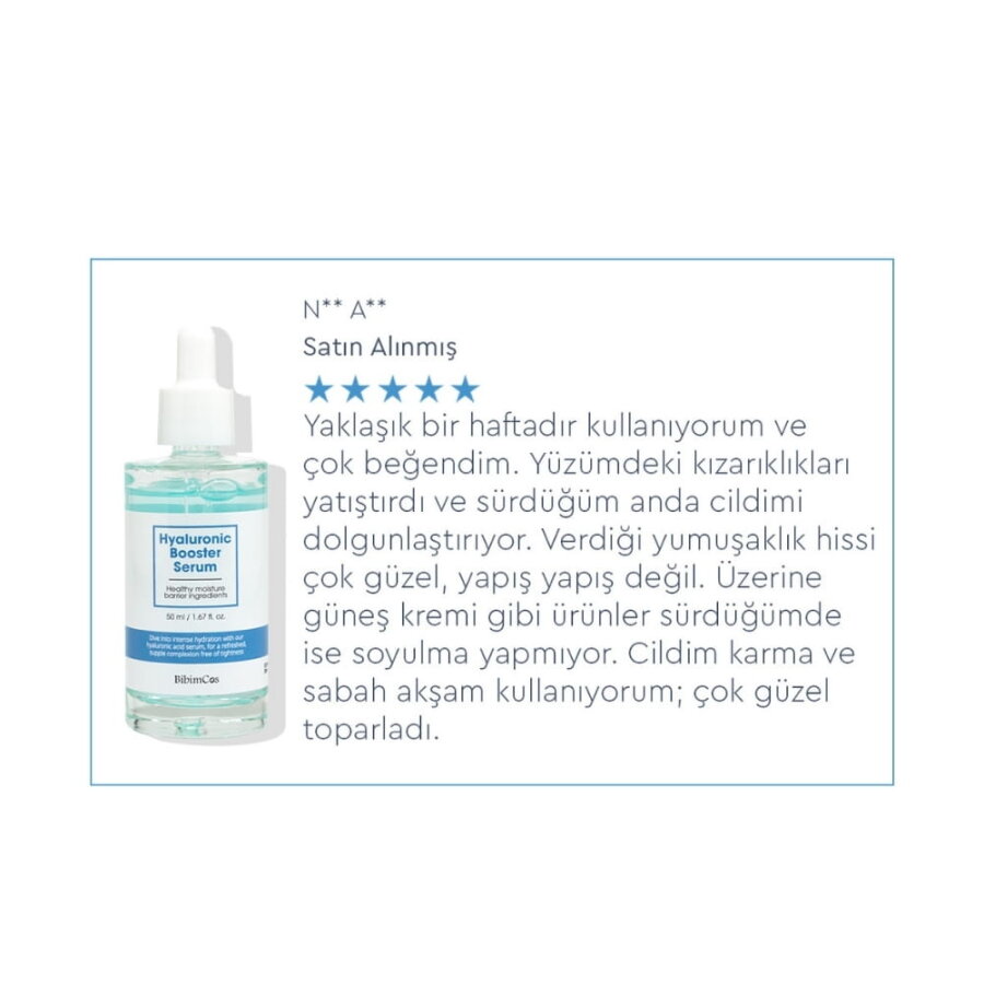 Bibimcos Hyaluronic Booster Serum, farklı molekül boyutlarındaki 8 tip hyaluronik asit ile cilde çok katmanlı nemlendirme desteği sunar. Panthenol ve Centella Asiatica özü ile zenginleştirilmiş formülü sayesinde cilt bariyerini desteklemeye yardımcı olur. Düzenli kullanımda cildin nemli ve bakımlı görünmesine katkı sağlayabilir.