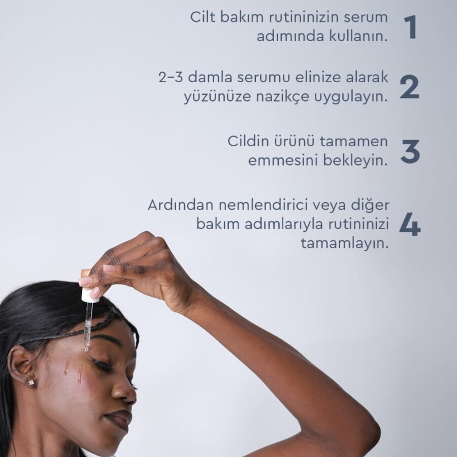 Cildinizi temizledikten ve kuruladıktan sonra, cilt bakım rutininizin serum veya esans aşamasında yeterli miktarda ürünü uygulayın. Emilmesini bekleyin ve ardından diğer adımlara geçin.