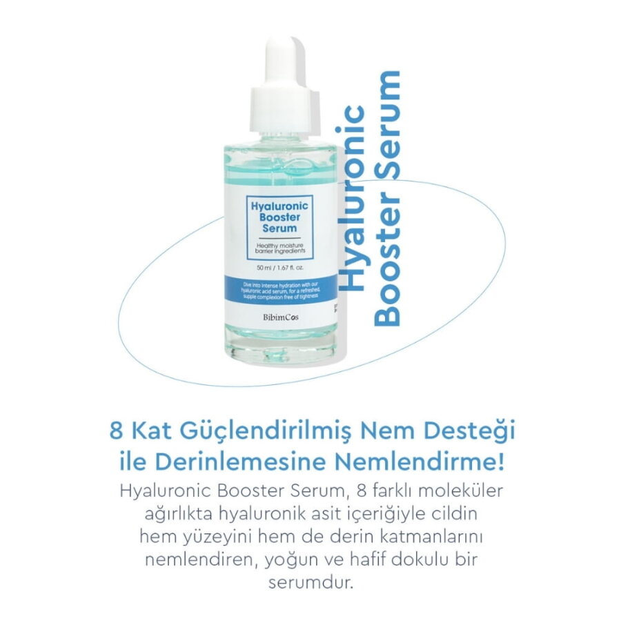 Bibimcos Hyaluronic Booster Serum, içeriğindeki 8 farklı molekül ağırlığına sahip hyaluronik asit çeşitlerini içeren nemlendirme odaklı bir cilt serumudur. Formülü Panthenol ve Centella Asiatica özü ile güçlendirilmiştir. Düzenli kullanımda cildin nem tutma kapasitesini desteklemeye yardımcı olabilir.