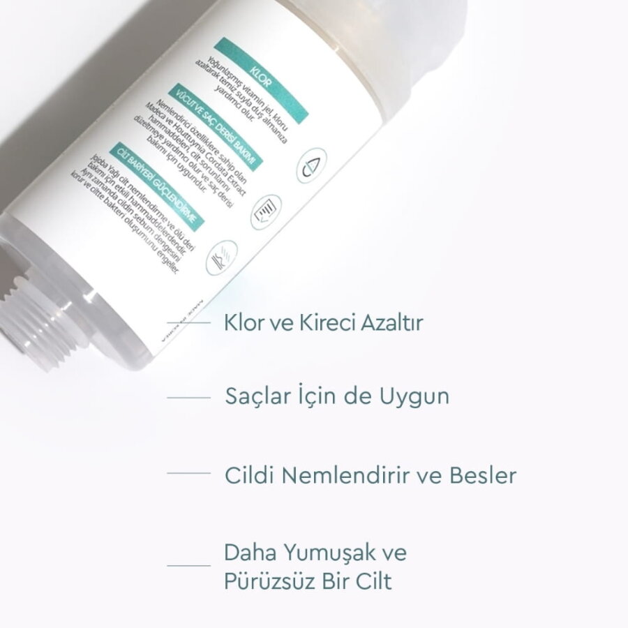 Musluk suyunun içerdiği klorun azalmasına yardımcı olacak şekilde tasarlanmış bir duş filtresidir. İçeriğindeki bitki özleri ve yağlar sayesinde duş deneyiminizi destekler. Düzenli kullanım ile yaklaşık 2 aya kadar kullanılabilmektedir.