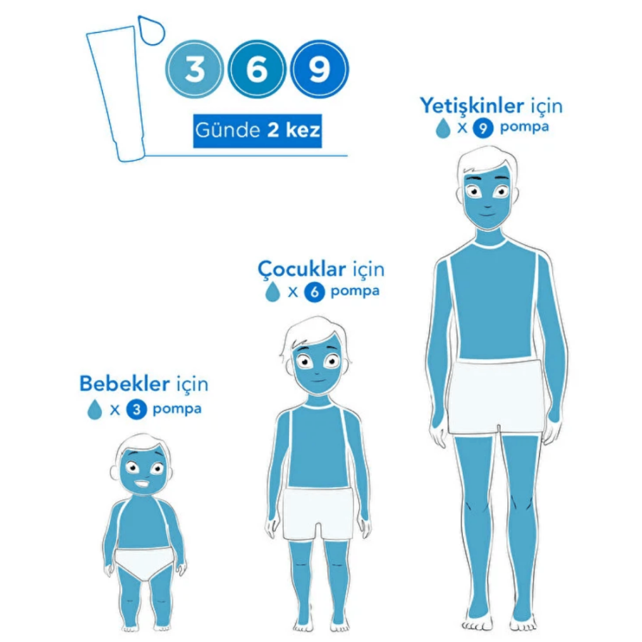 Kullanım Şekli: Bir çocuk için 6 pompa gereklidir. (1 pompa baş boyun bölgesine, 1 pompa göğsün ön bölgesine, 1 pompa kollara, 1 pompa sırt bölgesine, 1’er pompa bacaklara uygulanmalıdır.)