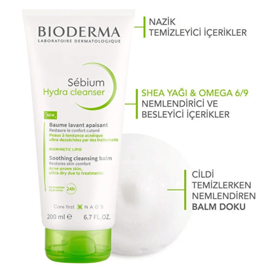 Bioderma Sebium Hydra Balm Dokulu Temizleyici, akneye eğilimli, hassas ve kuruya meyilli ciltlerde nemlendirici-etkili temizlik sunmak için özel olarak geliştirilmiştir. Sebium Hydra Balm Dokulu Temizleyici, cildi kurutmadan derinlemesine arındırırken aynı zamanda yatıştırıcı bir bakım sağlar.