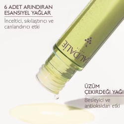 Üzüm çekirdeği yağı, makademya yağı ve biberiye özleri ile cildi besler, sıkılaştırmaya ve daha pürüzsüz bir görünüm kazandırmaya yardımcı olur.