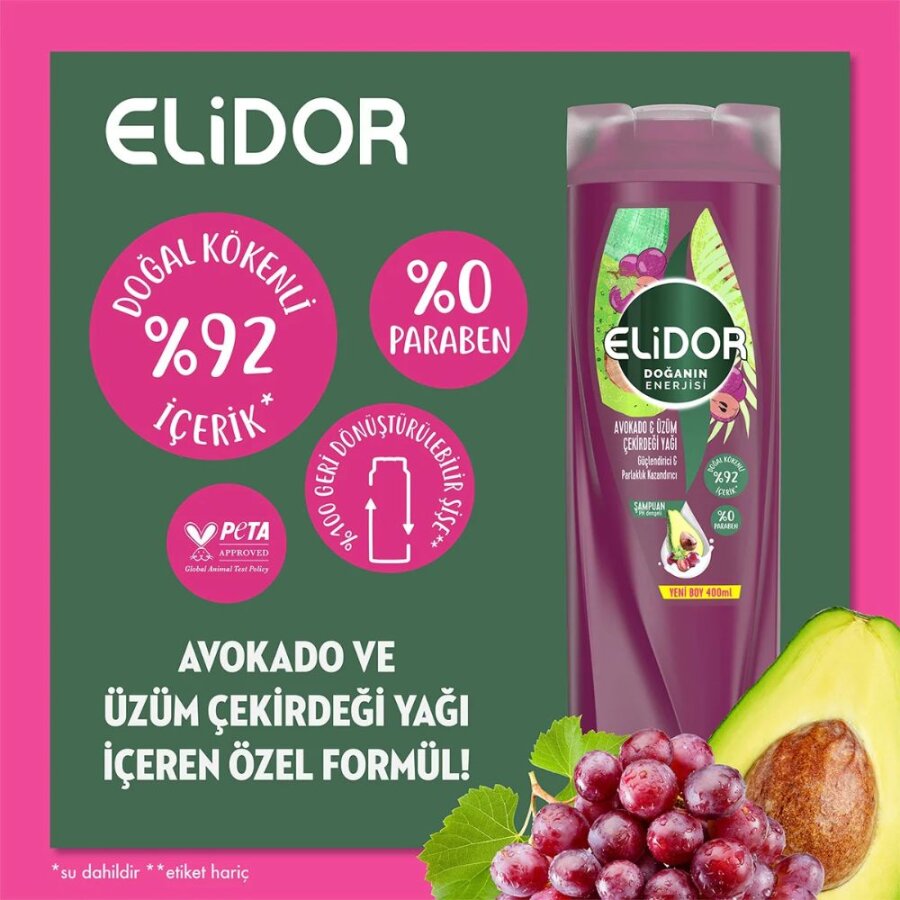 Elidor Doğanın Enerjisi Avokado & Üzüm Çekirdeği Yağı Şampuan 400ml YORUMLARI