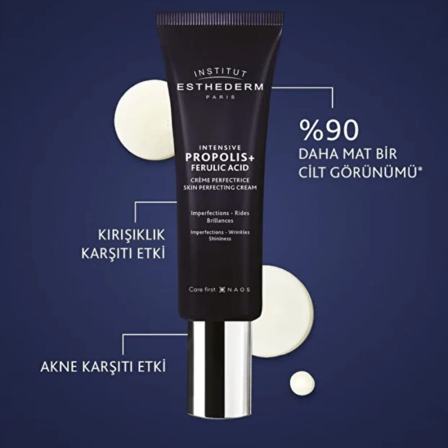 Cildi korumaya yardımcı ferülik asit ve propolis ile güçlendirilmiştir.