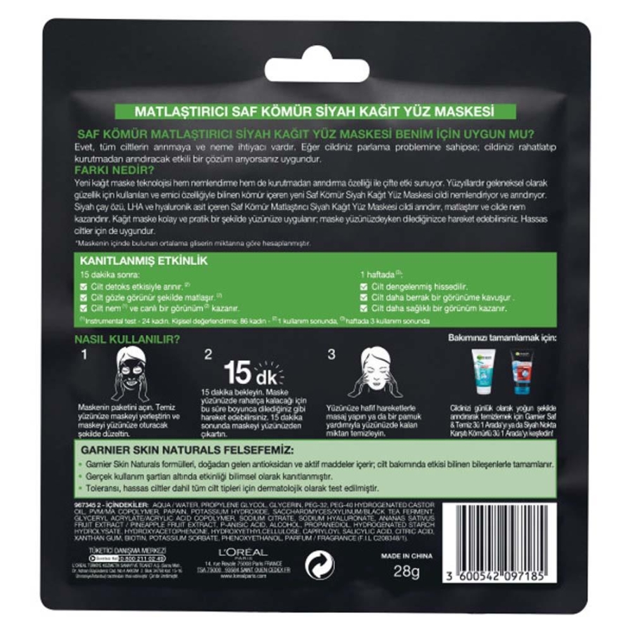 Kömürün emici gücü ile cildinizi temizler.