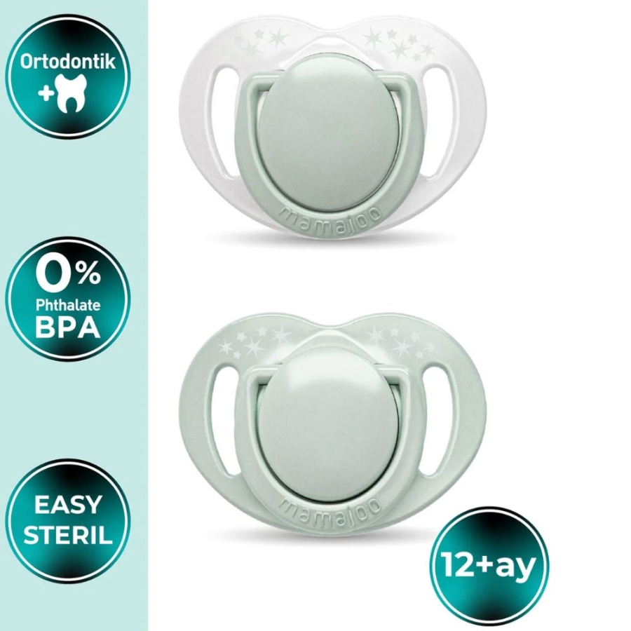Mamajoo Sterilizasyon & Saklama Kutulu Powder Green Desenli İkili Ortodontik Emzik 12 Ay+ YORUMLARI