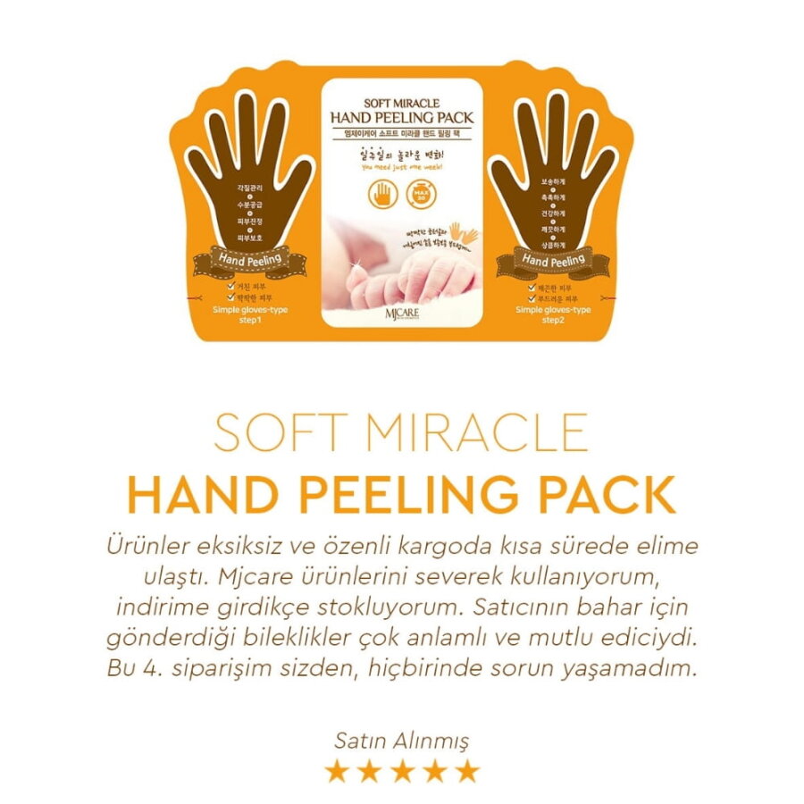 Kullanım Şekli: Ellerinizi yıkayın, kurulayın ve maskeyi ambalajından çıkarın. Önce bir ele beyaz sıvı olan eldiven maske ve üzerine şeffaf naylon maskeyi giyin. İçerisinden çıkan bantlarla bileğinize tutturun. Aynı işlemi diğer eliniz için de gerçekleştirin. Maskeyi 20 dk bekletin. Bekleme sonrasında maskeyi çıkarın ve su ile iyice durulayın.