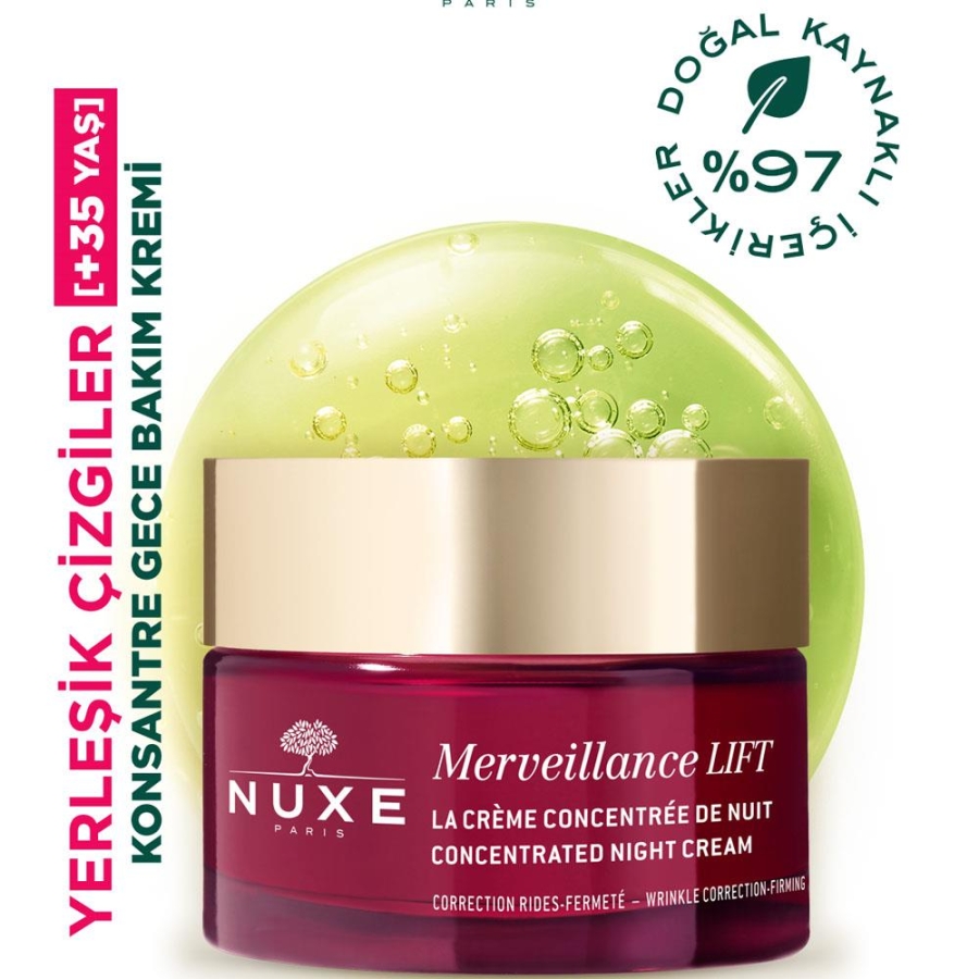 Nuxe Merveillance Lift Concentrated Sıkılaştırıcı Gece Bakım Kremi, cildi gece boyunca besleyip nemlendirerek sabah daha dinlenmiş, canlı ve rahatlamış bir görünüm kazandırır. Zengin dokusu sayesinde cildin yenilenmesine destek olur ve daha pürüzsüz, esnek bir cilt görünümü sağlar. Düzenli kullanımda yaşlanma belirtilerine karşı bakım sunar.
