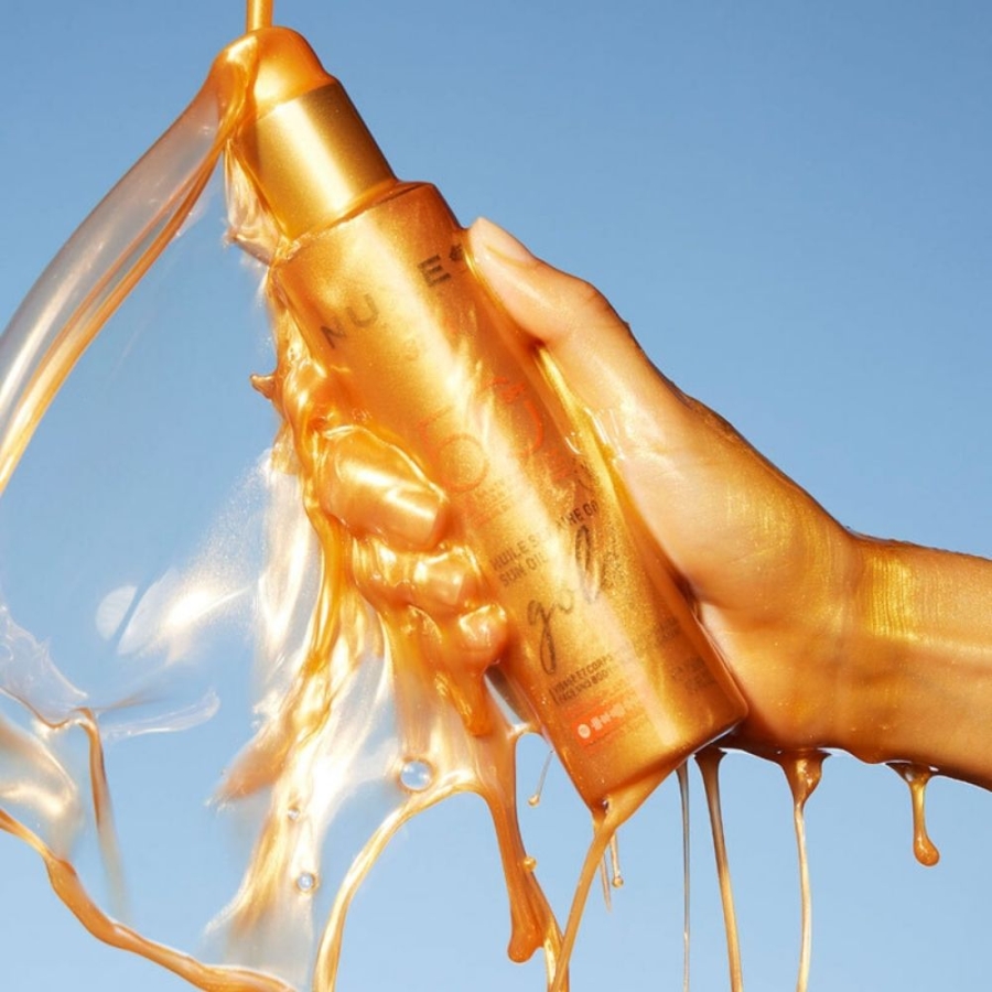 Nuxe Sun Altın Işıltılı Bronzlaştırıcı Yüz ve Vücut Yağı.