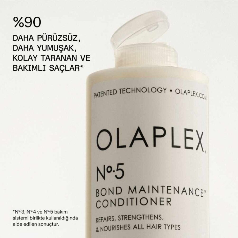 Nº 5 Bond Maintenance Conditioner, saçlarınızın daha kolay taranabilir hale gelmesi için formüle edilmiş, derinlemesine nemlendiren ve saç bağlarını onaran profesyonel saç kremidir. sağlıklı bir görünüm kazandıran profesyonel bir saç kremidir. Elektriklenmeyi azaltır, sağlıklı bir görünüm elde edilmesine yardımcı olur ve güç kazandırır. Olaplex’in patentli bağ güçlendirme teknolojisine sahiptir, paraben ve sülfat içermez, vegan formüle sahiptir.