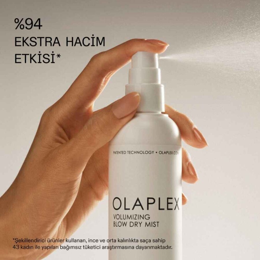 Olaplex Volumizing Blow Dry Mist saçlara hacim ve doku kazandıran, saçın kuruma süresini hızlandıran, ısı hasarına karşı korumaya yardımcı olan spreydir. Bu çok amaçlı ürün tüm saç tipleri için uygundur. Saçtaki hasar görmüş bağları güçlendiren patentli Olaplex Bond Building Teknolojisi’ne sahiptir. İçeriğinde bulunan Bezelye Peptitleri saç tellerini dolgunlaştırır, nemlendirir ve korur. Bambu Özlü Lipopeptitler, saçları ısıyla şekillendirmenin getirdiği hasardan korumaya yardımcı olur ve saç stilinin kalıcılığını destekler. Jackfruit Polisakkaritleri ve gelişmiş polimerler, yumuşak ve pürüzsüz saç tellerini destekler. Saçlarda yapışkan bir his bırakmaz. Saçı 232 dereceye kadar ısıdan koruduğu klinik olarak kanıtlanmıştır. Sülfat, paraben, glüten ve silikon içermez.