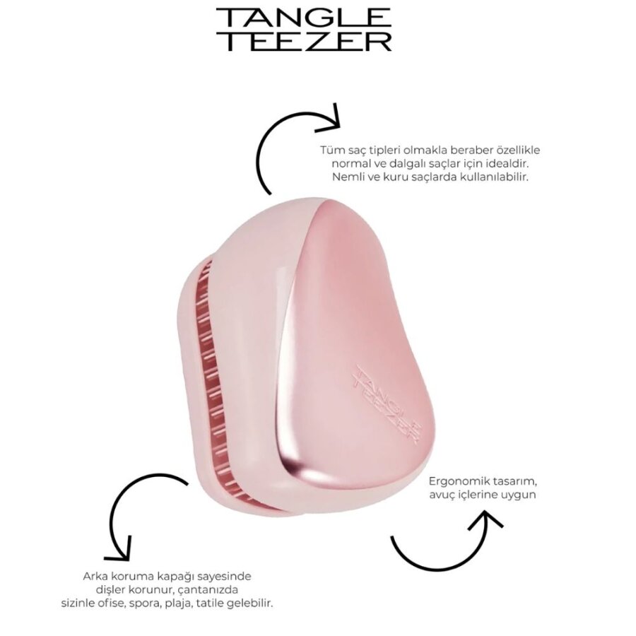 Tangle Teezer Compact Styler Rose Gold Ivory, saçlarınızı kırmadan ve çekiştirmeden fırçalamanıza yardımcı olur. Kompakt yapısı sayesinde seyahatlerde ve günlük kullanımda pratiklik sunar.