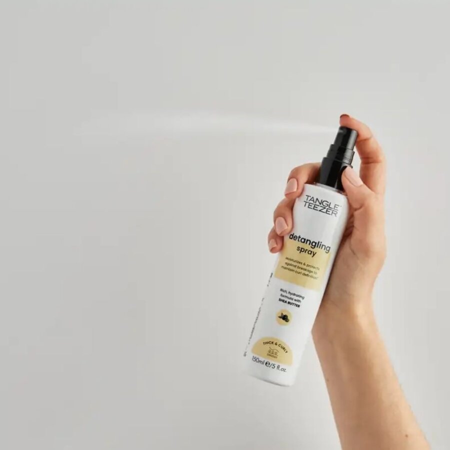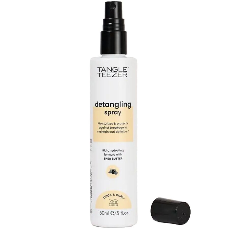 Tangle Teezer Thick & Curly Detangling Spray, kalın telli, kuru ve kıvırcık saçların kolayca fırçalanabilmesi için özel olarak geliştirilen, güçlü nemlendirici etkili bir saç açıcı spreydir.