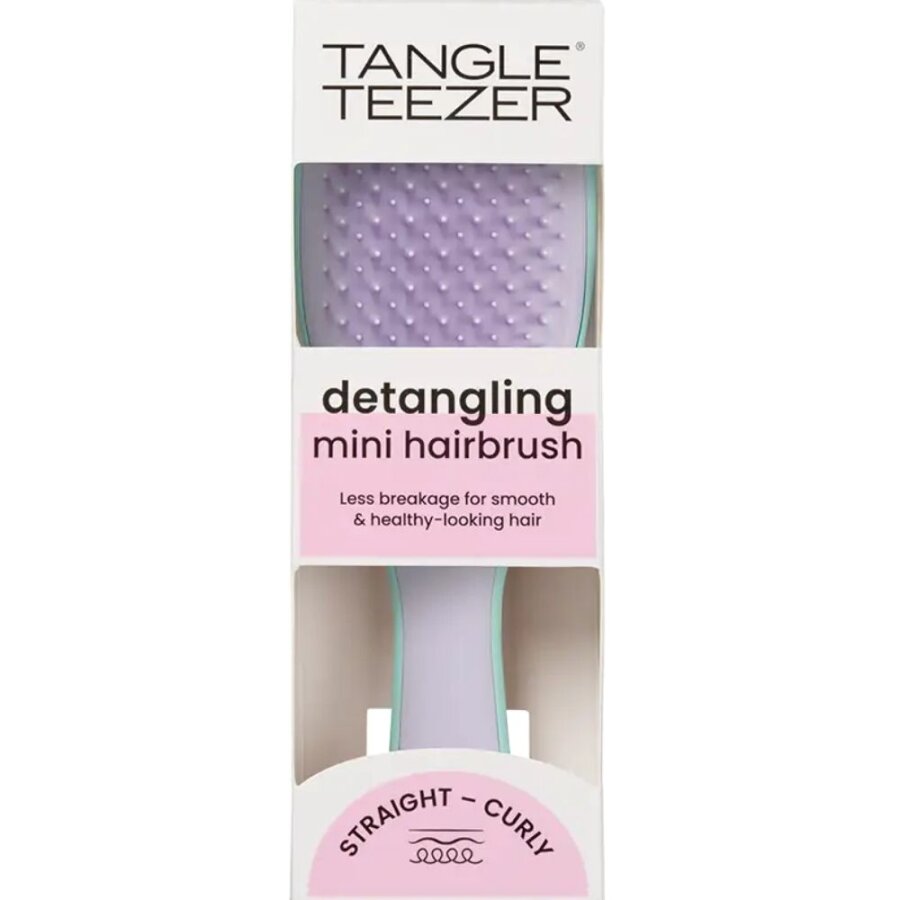 Tangle Teezer Mini Wet Detangler – Wisteria Leaf (Lilac & Mint), kuru ve ıslak saçlar için tasarlanmış kompakt bir saç fırçasıdır. Lila ve nane yeşili tonlarındaki şık tasarımıyla dikkat çeker ve seyahatlerde veya günlük kullanımda kolaylık sunar.