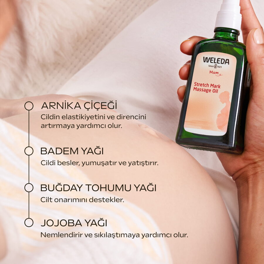 İçeriğindeki badem yağı , buğday özü yağı, jojoba yağı ve organik arnica özü, cildinizdeki gerginlik ve kaşıntı hissinin azaltılmasına yardımcı olur.