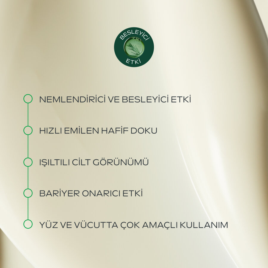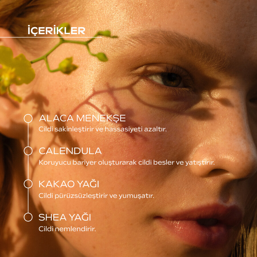 Zengin besleyici içeriğiyle cildin koruyucu bariyerini destekler ve yenilenmesine yardımcı olur.